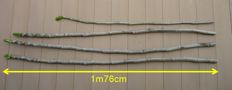 この様な感じで4本の幹を採りましたが、一番長い幹で約1m76cmもありました。