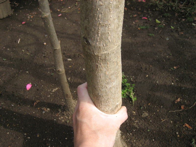 左後ろにあるのは、去年地面から出てきて成長した芽です。円周約6.5cm程度でした。