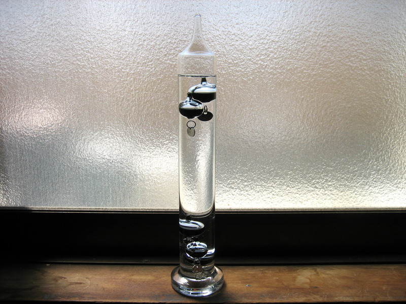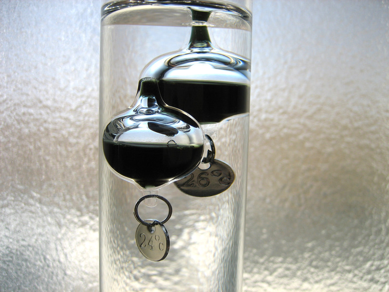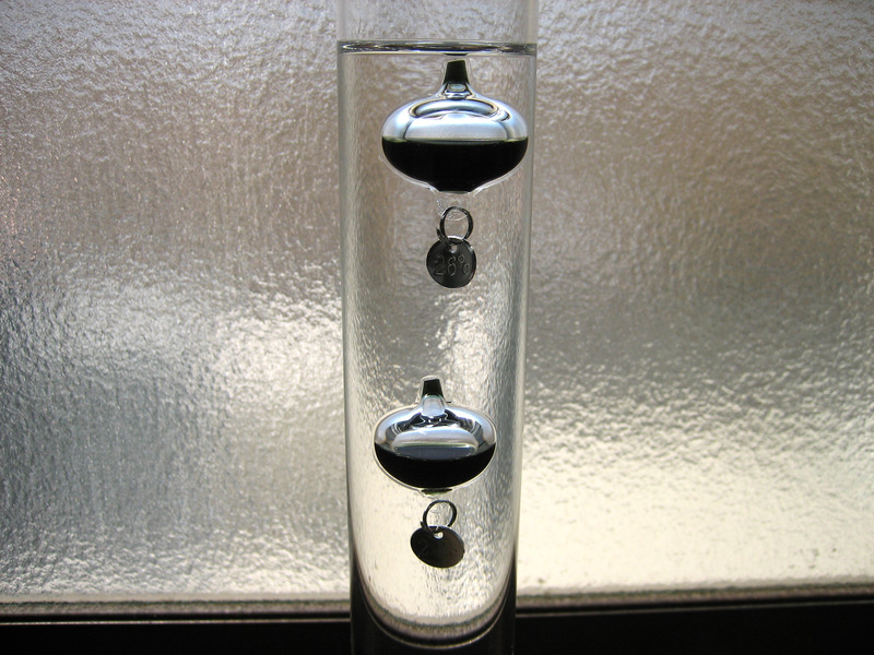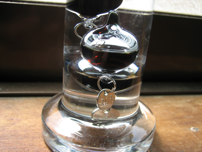 何だか肌寒いなと感じた時に、ガリレオ温度計を見て26℃のウキが上がっていたら、1枚上着を羽織るという感じで使っています。