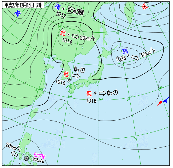 → 気象庁 | 気象衛星 (15日AM3時の雲の様子、15日AM3時の気圧図)