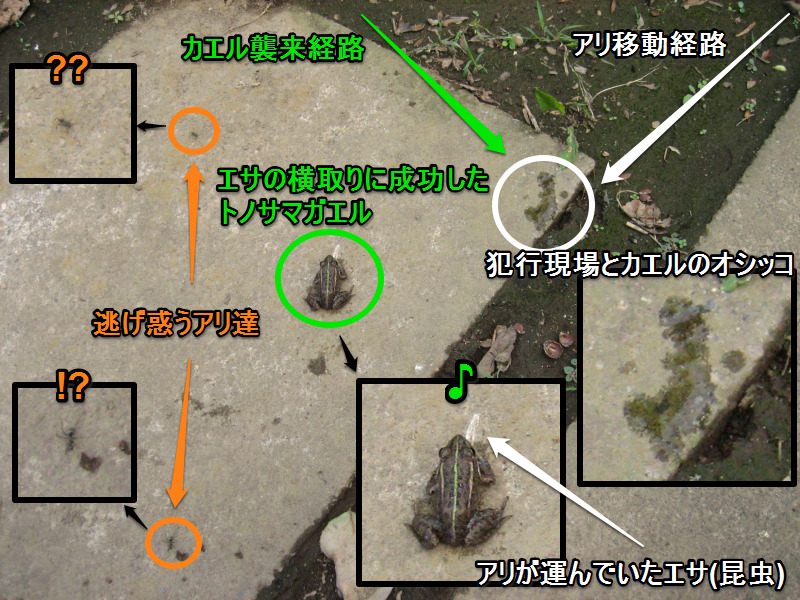 その1→ アリのエサを横取りするカエル