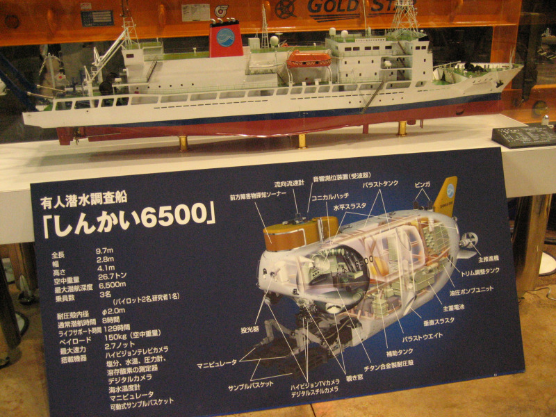 有人潜水調査船『しんかい6500』の構造と詳細が分かるフリップです。