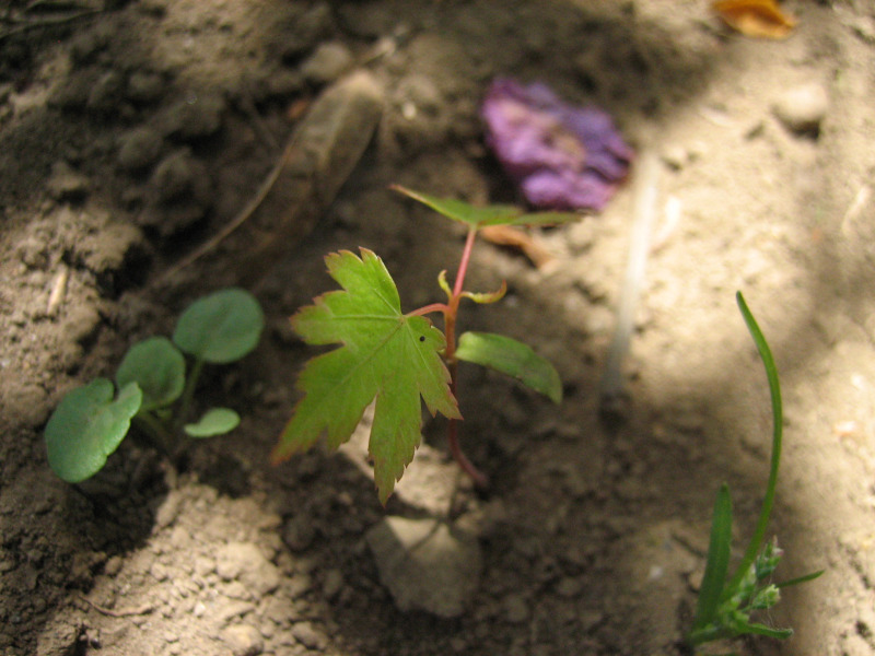 恐らくは、近くに植わってある『猩々野村(野村モミジ)』より落ちた種から発芽したものだと思います。