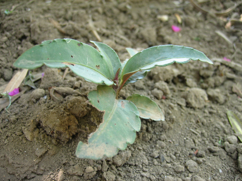 庭で鉢植え栽培しているものが親で、毎年沢山つける実が他の植木鉢に入り込み発芽しました。
