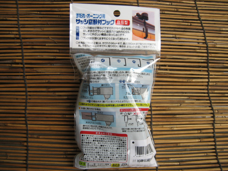 そして、取り替えたのはこちらの『すだれ・オーニング用 サッシ窓取り付けフック自在型』です。