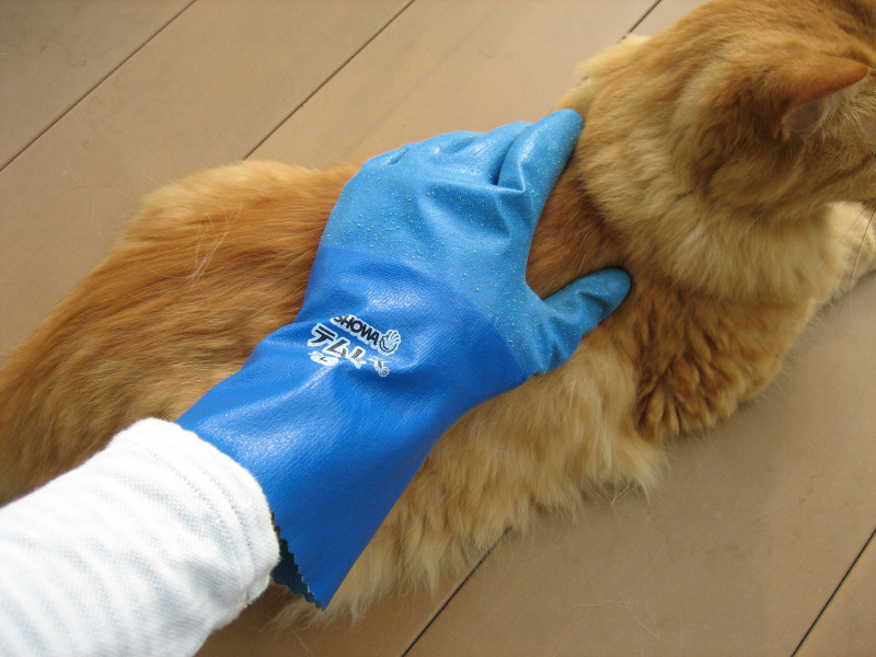 手でブラッシングする時と違って毛がまとまらず、今度は掃除が面倒な事になり、また、猫がテムレスにじゃれついてきて爪で少し穴が空いてしまいました。