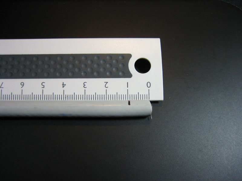 右:10、端から7mmの所に印をつけます。自分で判るなら爪でアルミ箔に跡をつけるだけでも良いです。