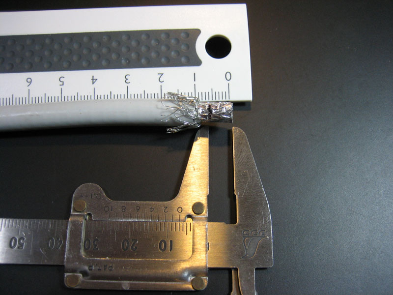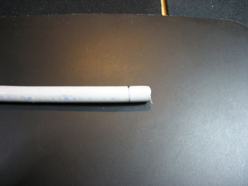 左:1、ケーブルを必要な長さにカットして先端の10mmに印をつけます。