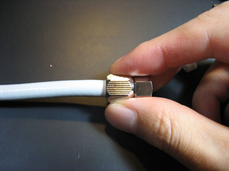 左:17、かんたんF型コネクターをネジをまわすように固定します。ネジが回らなくなったらもう抜けません。