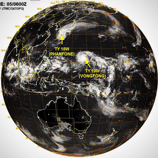 台風19号(VONGFONG)がマーシャル諸島で発生、18号と同じような経路を進む予報となっています。台風18号の後を進むことで、海水温などに多少の影響が出るかもしれませんが、同じ程度の勢力への発達は想定で… http://t.co/StyvUemqi4