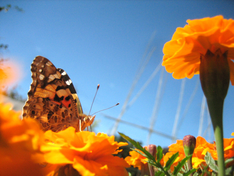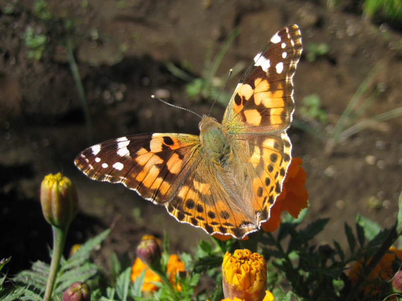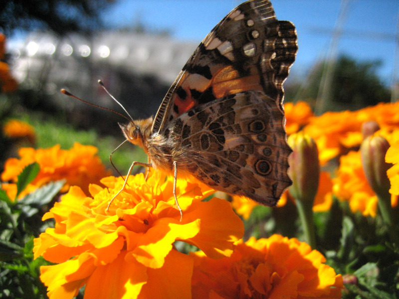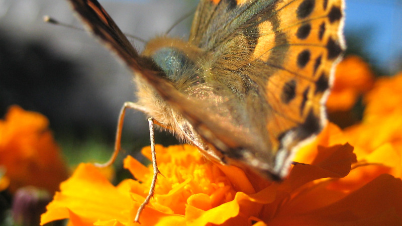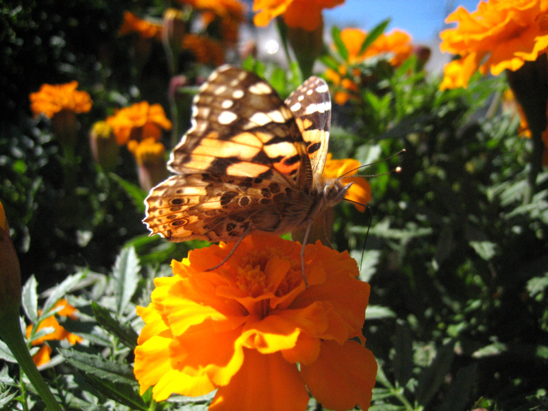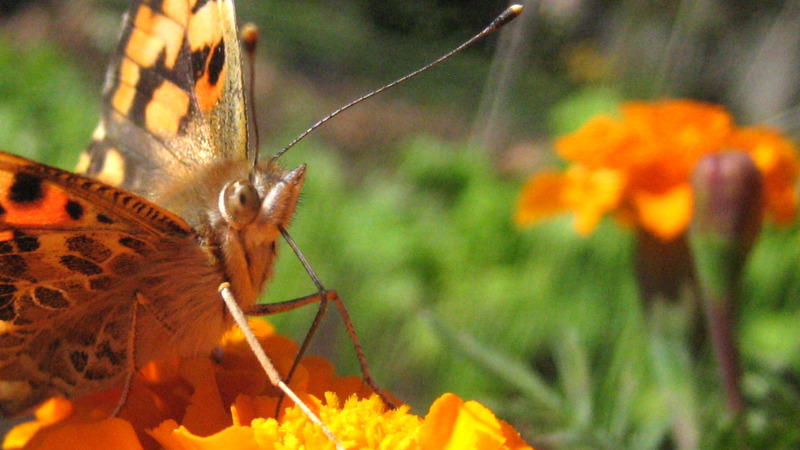 Home > ブログ > 昆虫(害虫・益虫・他) > マリーゴールドの蜜を吸う『ヒメアカタテハ』
