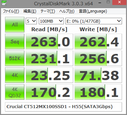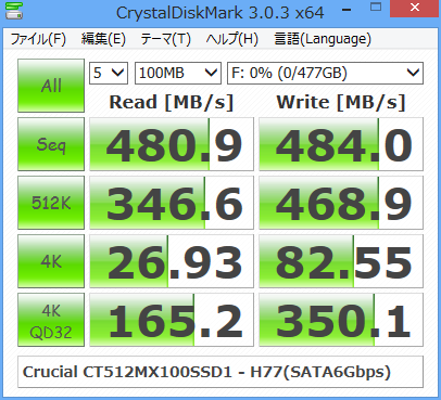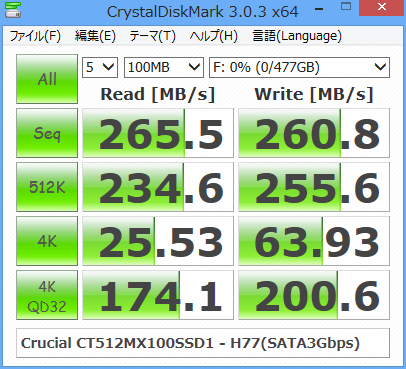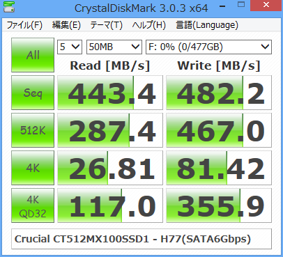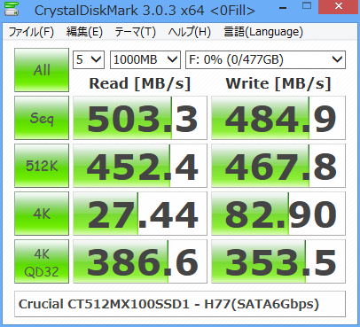 Home > ブログ > レビュー - PCパーツレビュー > Crucial 『MX100』512GBモデルを簡易レビュー、3G/6Gbps接続で比較