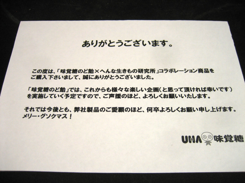 Home > ブログ > アニメ・漫画・フィギュア他 > 『UHA味覚糖×へんな生きもの研究所』の限定コラボお菓子、開封の儀