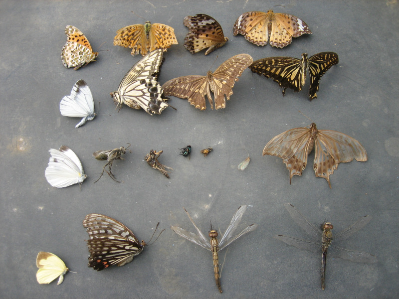 【アゲハチョウ、キアゲハ、ツマグロヒョウモン♂・♀、モンシロチョウ、スジグロチョウ、モンキチョウ(夏型)、アカボシゴマダラ、シオカラトンボ、アブ、ギンバエ?、ウスバカゲロウ?】