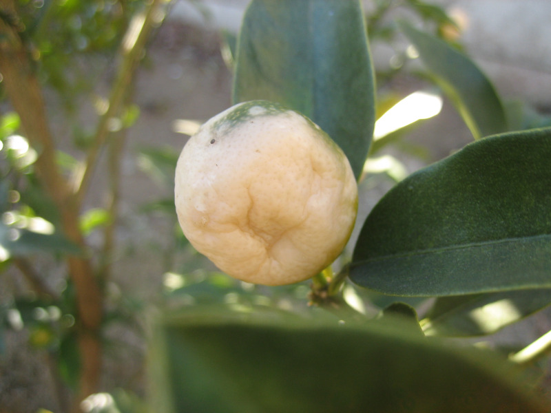 収穫前の話ですが、収穫しないままでいたら、1月に入って急激に実が白化してきてしまいました。白化の原因は寒さです。