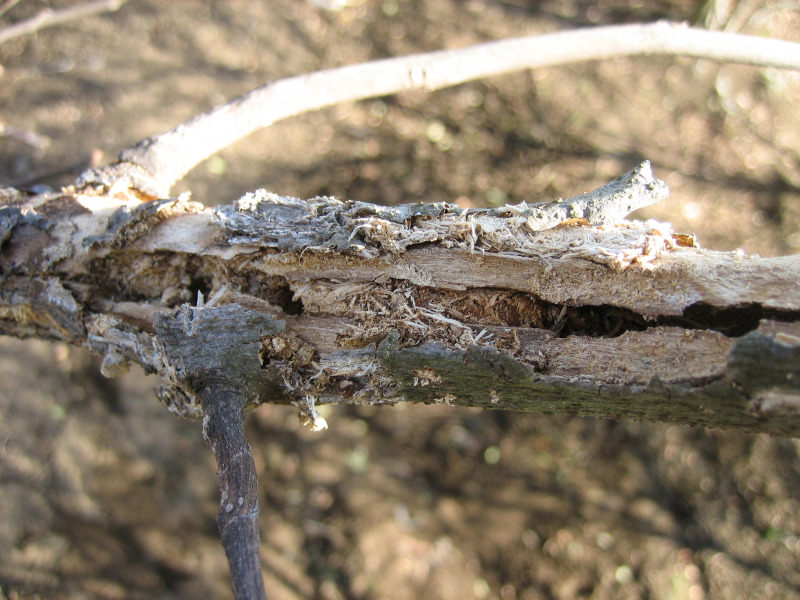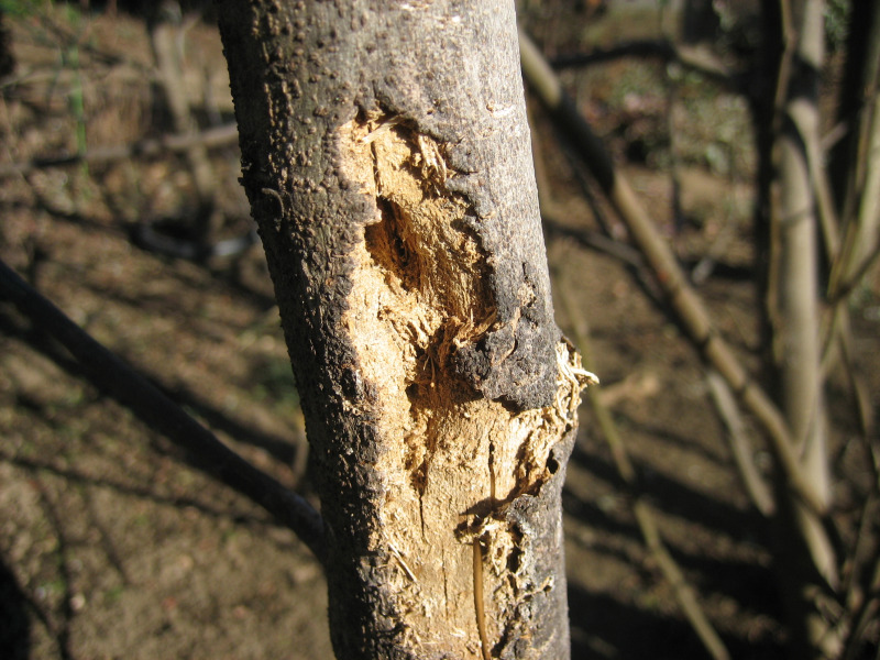 こちらは、去年の早い時期に皮の一部だけ食べられたパターンです。