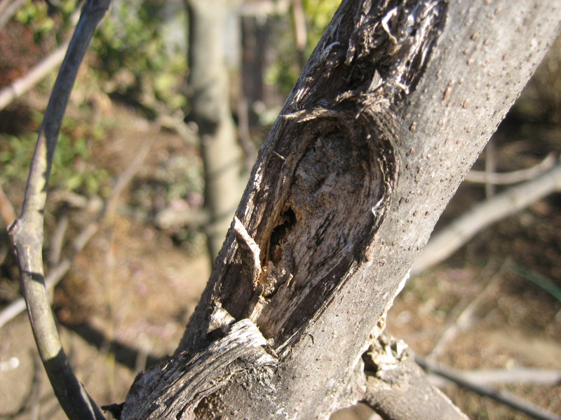木が傷口を塞ごうとした回復の痕跡が見られます。