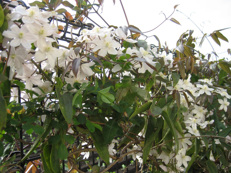 咲き出したのはこちらの、クレマチス『アーマンディ アップルブロッサム』です。(※4月9日朝撮影)