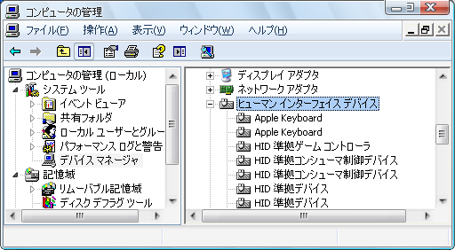 ※注、うちの環境下だけかもしれませんが、このドライバをインストール後、再起動するとFnキーが使えない状態に戻ったりします。その場合、デバイスマネージャのヒューマンインターフェイスデバイスから見えるApple KeyBoard2箇所のドライバーを削除して、USBを再接続する事で再認識して使えるようになります。