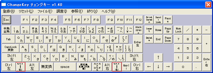 MicrosoftからWindows Server 2003 Resource Kitをインストールしてremapkey.exeを実行する方法もありますが・・・少々面倒なので、フリーソフトのChange Keyを使用する方法でも同じ効果があるのでそちらを紹介します。