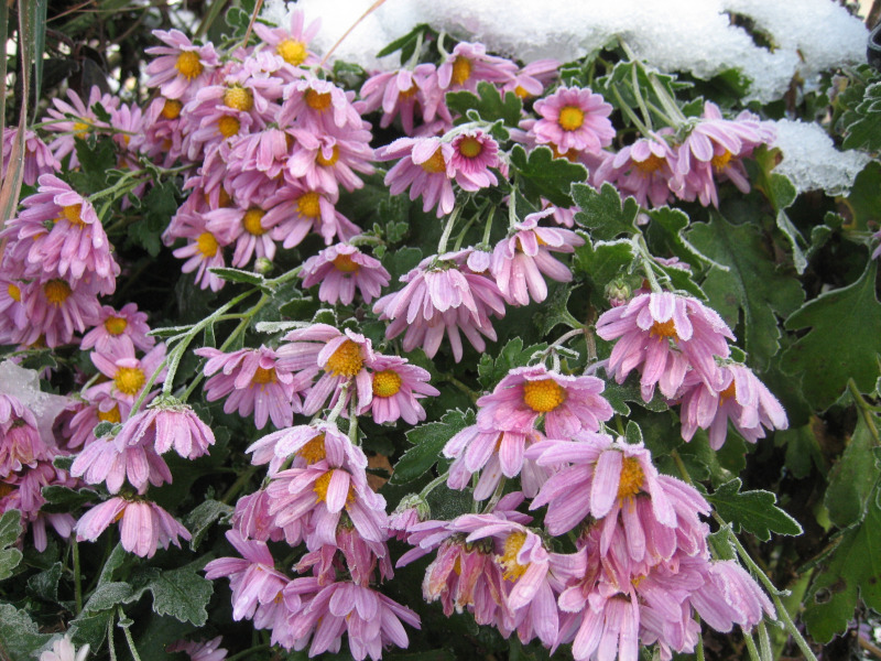 満開だった菊も花ごと凍結。