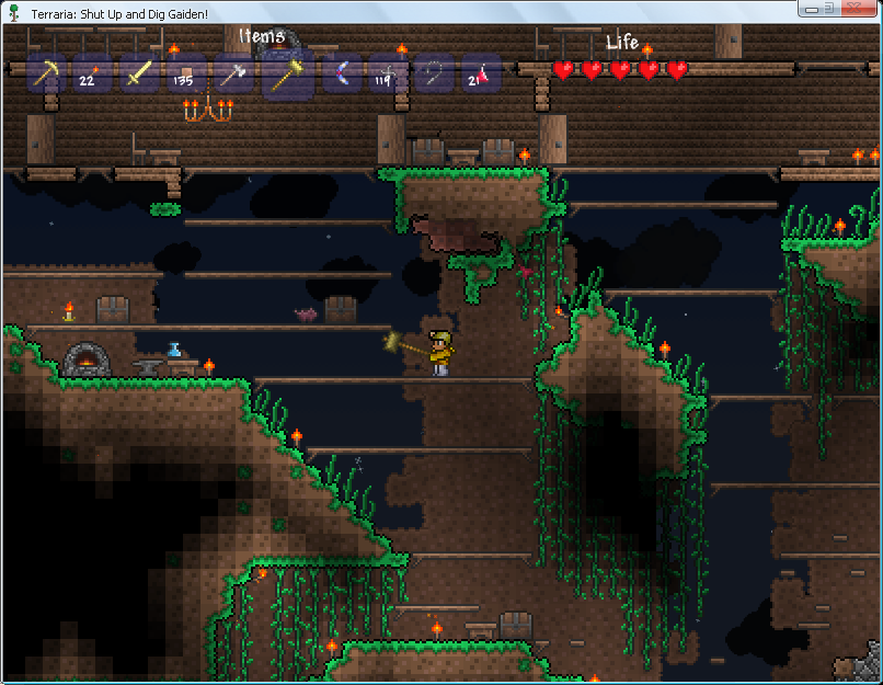 2011-11-22 追記修正 攻略について検索してくる方が多いですが、この記事はTeraria ver1.0.1(一番最初のバージョン)の時のレビューです。現行Verの攻略などについては以下のWikiをオススメします。