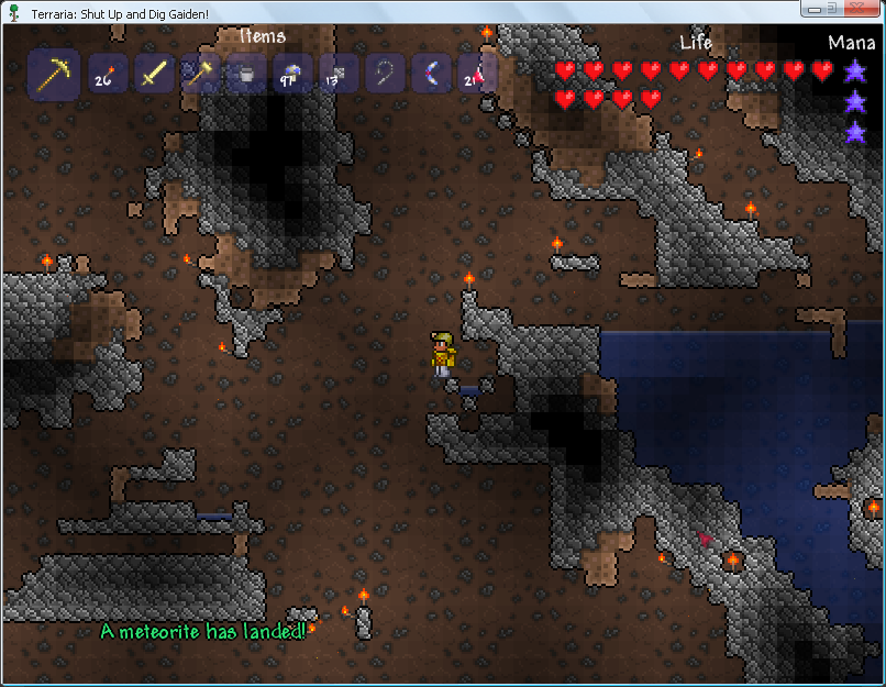 地下を探索していると、隕石が落ちてきたというメッセージが