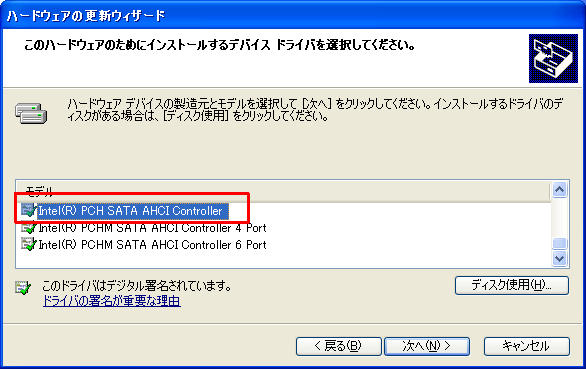 5、「Intel(R) PCH SATA AHCI Contorller」 ドライバーを入れます。下の2つを入れてもインストール途中で強制シャットダウンされ、入りません。