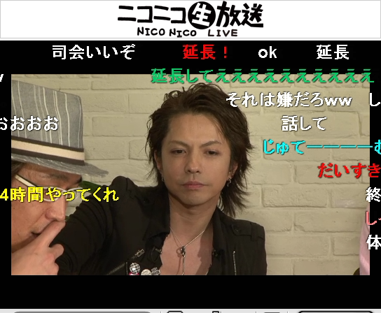 トークが上手いのは知っていたのですが、ただ、どう見てもラルクをあまり知らない様子、また、初対面で話がイマイチ噛み合いません。ラルクというかHydeはニコ生初出演じゃないのに、ニコ生の面白さを説明する始末です。そんな状況を見て司会に対する不満コメントも流れはじめました。