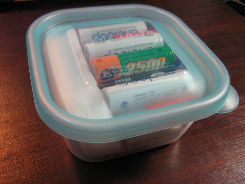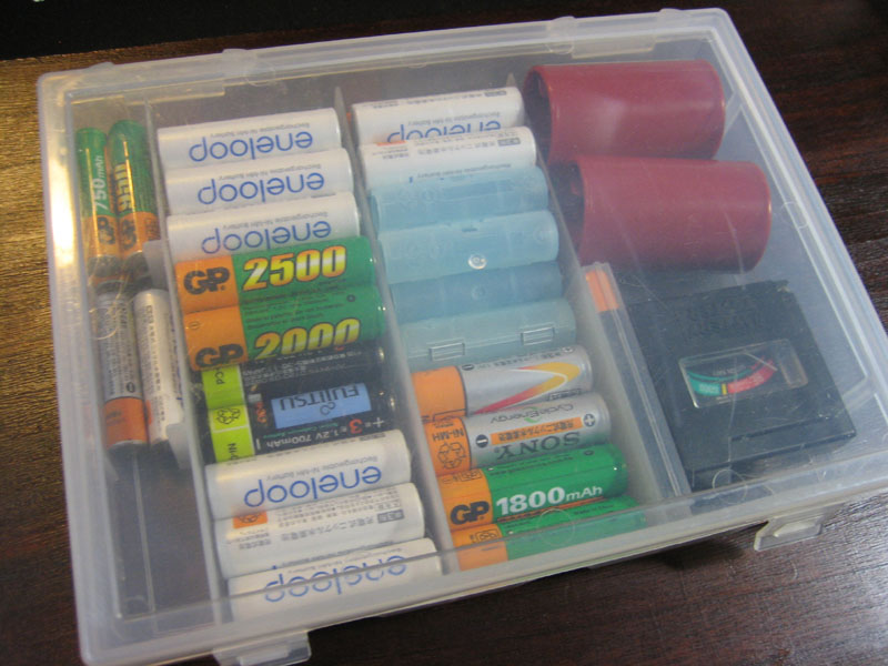 今まで、電池の収納方法には困っていました。と、いうのも所有するほとんどの電池が充電池で、処分すること無くいつも量が変わらないので、一定量の収納領域が必要だったからです。今までの収納方法は以下のようなものでした。