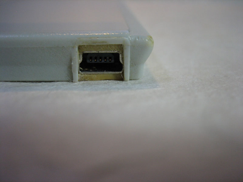 コネクタ部分はminiUSBにしました。ケーブルが出ていた穴は、丁度miniUSB-Bメス端子が収まる大きさになっています。ただ取り付けただけでは端子がぐらついてしまうので、端子がぐらつかないようにタミヤのエポキシパテで周りを囲み、強度を確保しています。塗装はしていません。