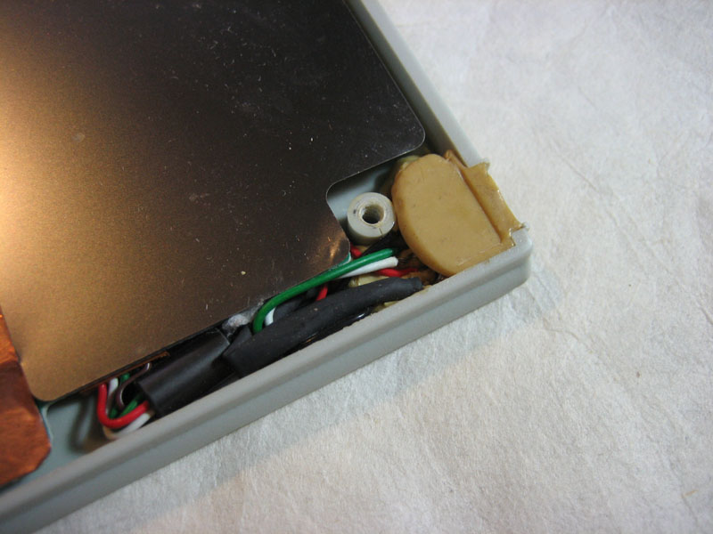 裏蓋の鉄板を外すとパテでがっちり強化した部分がでてきます。改造自体はケーブルを切断した後にUSBのピンアサインを確認しながらハンダ付けしただけの簡単な改造です。この後、動作テストをして、パテを盛って整形しました。パテがケース内に密着するようにしないとグラついてしまうので、気持ち多めに盛りつけています。