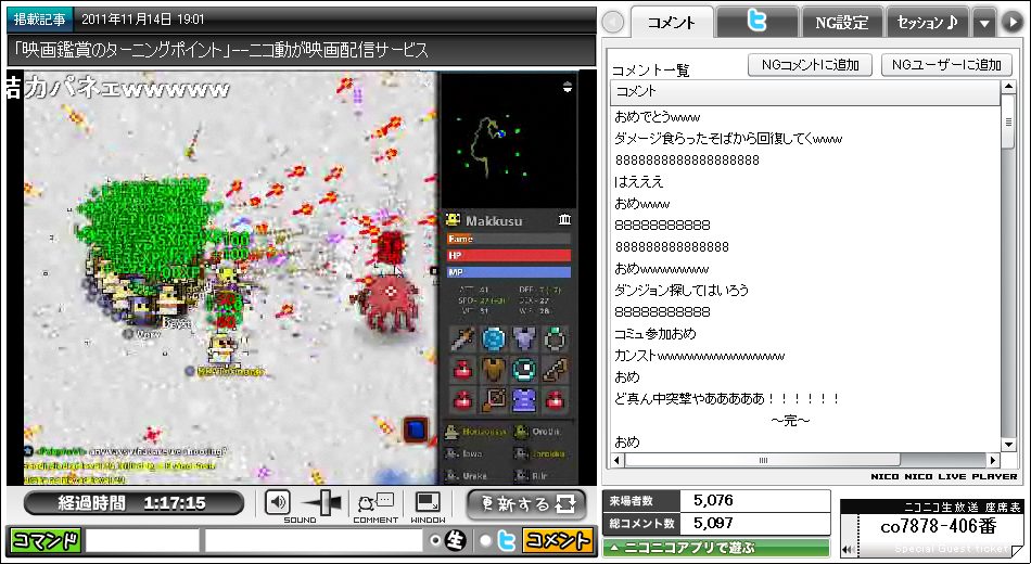 昨日の話ですが、ニコニコ生放送の、とあるユーザー生放送を見に行ったら、『集団でオンラインゲームをプレイする』という面白いことをやっていたので、参加してみました。