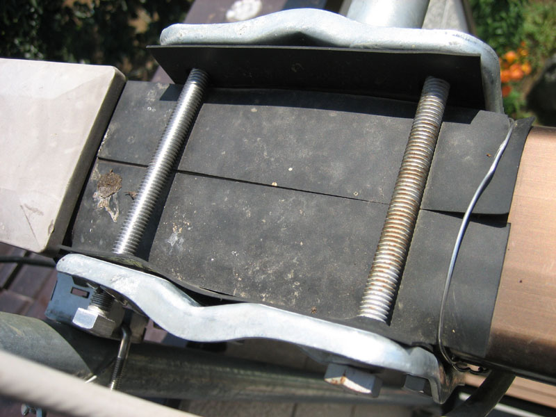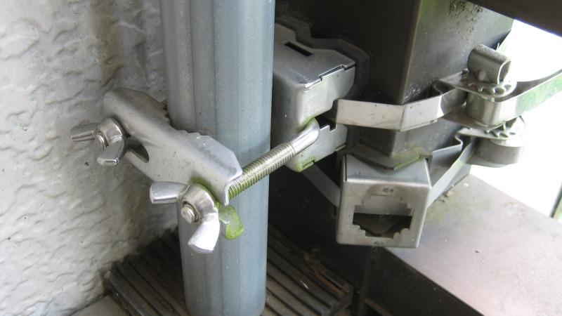 亜鉛メッキのアンテナマストと、ステンレス製のベランダ固定器具です。