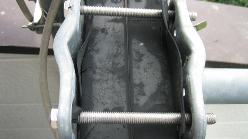 クッション材として使用した合成ゴムには、ひび割れなどの経年劣化が見られますが、アンテナベランダ取付器具・ステンレスネジにはサビは見られず、購入した状態を保てています。