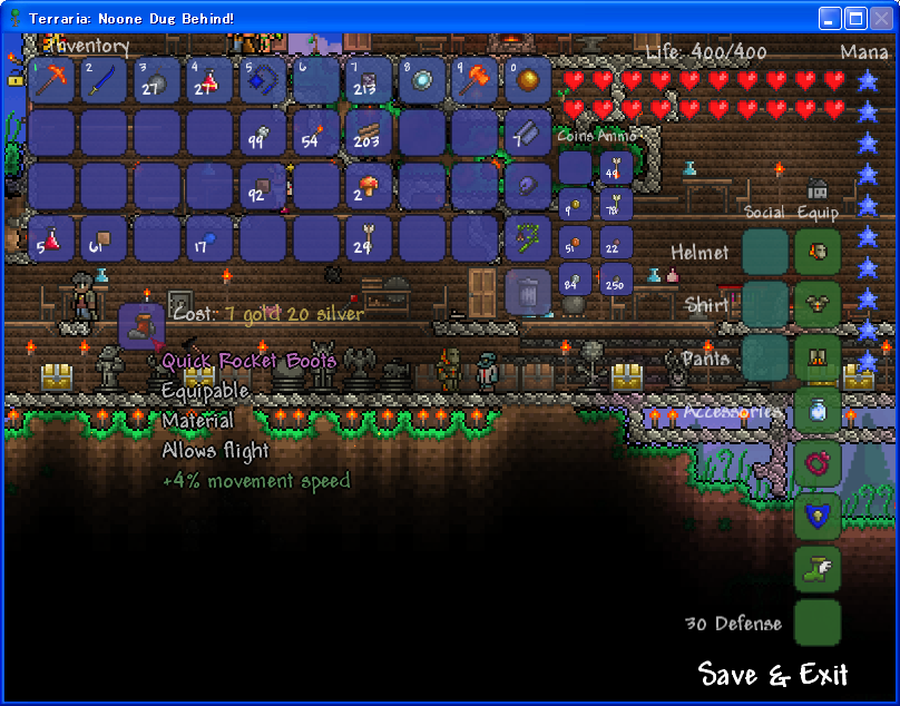Terraria(テラリア)Ver1.1をプレイ中でしたが、Ver1.1.1へのアップデートが来た為、 早いですがVer1.1でのラストプレイとなります。