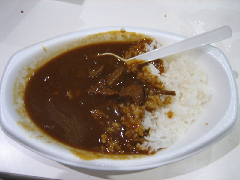 カツサンドやラーメンなどで迷った結果、ご当地グルメの牛たんカレーを食べることにしました。思ったより辛かったですが、熱々でコクがあり美味しかったです。
