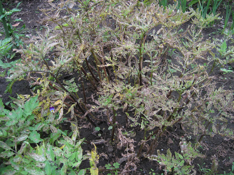 いくら捕獲してもキリがないので、最後の手段で農薬を使おうか迷いましたが、いっそのことジャガイモの収穫量を減らす意味で、一度葉っぱを全て切り捨ててリセットする事に。