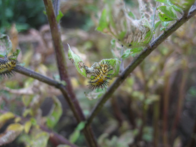 ジャガイモの害虫、ニジュウヤホシテントウかオオニジュウヤホシテントウ、或いはヤマトアザミテントウどれかの幼虫です。(画像クリックで拡大)