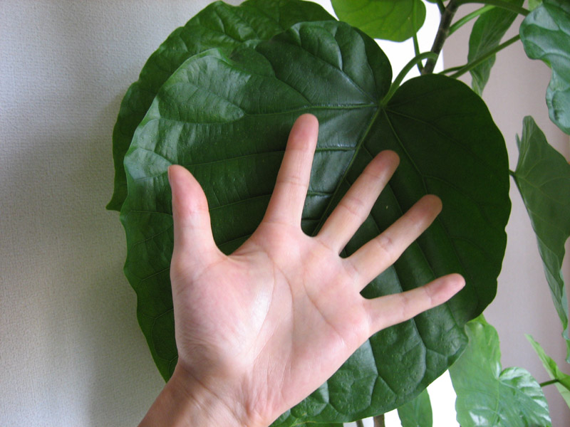 葉の大きさは手の平より大きいサイズ。このウンベラータを約3m程度の高さまで大きくすることが目標です。