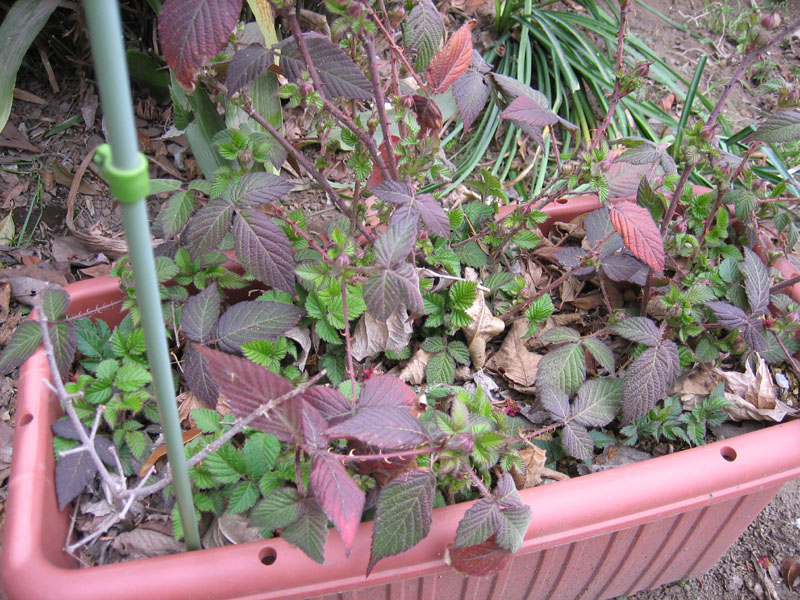 ついでに、矮性ラズベリーマイラビットのプランター植えです。