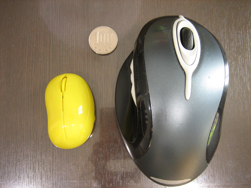写真左(又は上):ギネス記録に登録される小ささだけあって、大人の手の平で覆い隠せる程小さいですが、だからと言ってクリックがしにくいという事も、ホイールが動かしにくいという事もないです。
