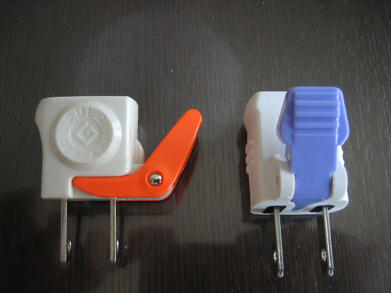 ユニプルグに意匠権がある為だと思われますが、ユニプルグとは違う向きにレバーが付いている商品となります。