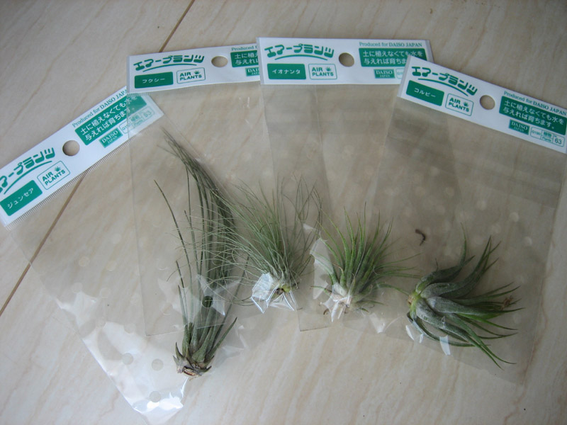 悔しいのでリベンジとして、ダイソーで新たに4種類のエアプランツを買って来ました。