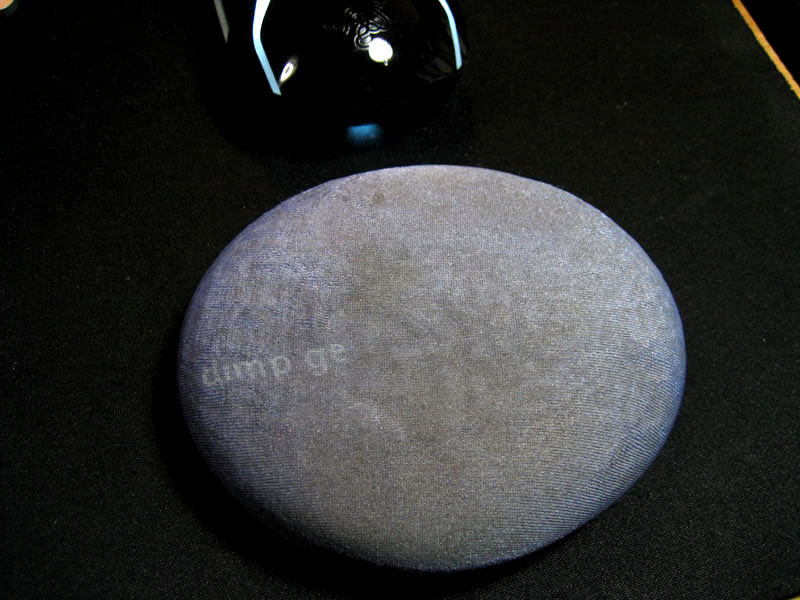 商品紹介ページには、「赤ちゃんの「ほっぺ」のように「ぷにぷに」した柔らかさがあり、手首を乗せると心地よい感触が伝わるハンドレストです。」と書かれていますが、MOH-014は明らかに弾性が強くなっていて、赤ちゃんのほっぺのような質感ではなくなりました。なんというか、おっぱいマウスパッドを硬くしたような質感です。悪い質感では無いのですが・・・003は明らかに赤ちゃんのほっぺの質感なので残念な変更でした。恐らく、合皮に伸縮性が余り無いので質感が硬くなってしまったのだと思います。