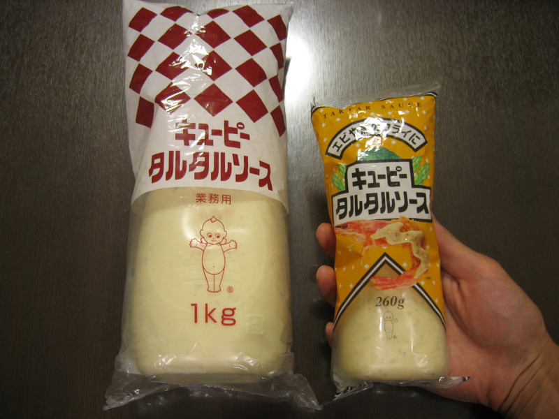 左が業務用のタルタルソース1kg、右が一般的な260gパッケージです。