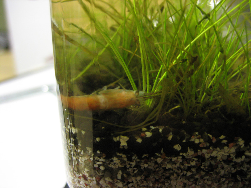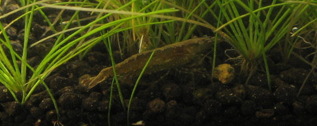 更にアップにしてみました。草食系のエビで水草に付いた藻をツマツマと摘んで食べてくれる可愛いヤツです。