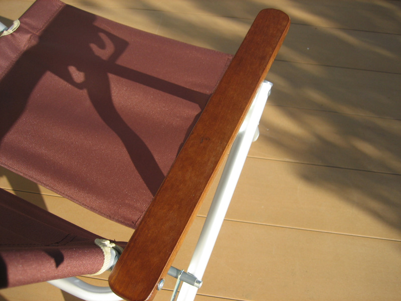 ■材質:構造部材:アルミニウム(表面加工=アルマイト)、張り材:ポリエスル、クッション材:ウレタンフォーム、ひじ掛け部:天然木