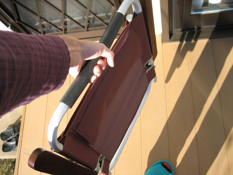 ただ、頭の部分にくるのが取っ手のパイプ部分で、頭の当たりがちょっと痛いので、もっと快適にするには、別途、クッションを用意した方が良さそうです。