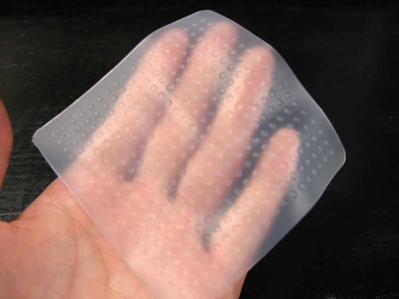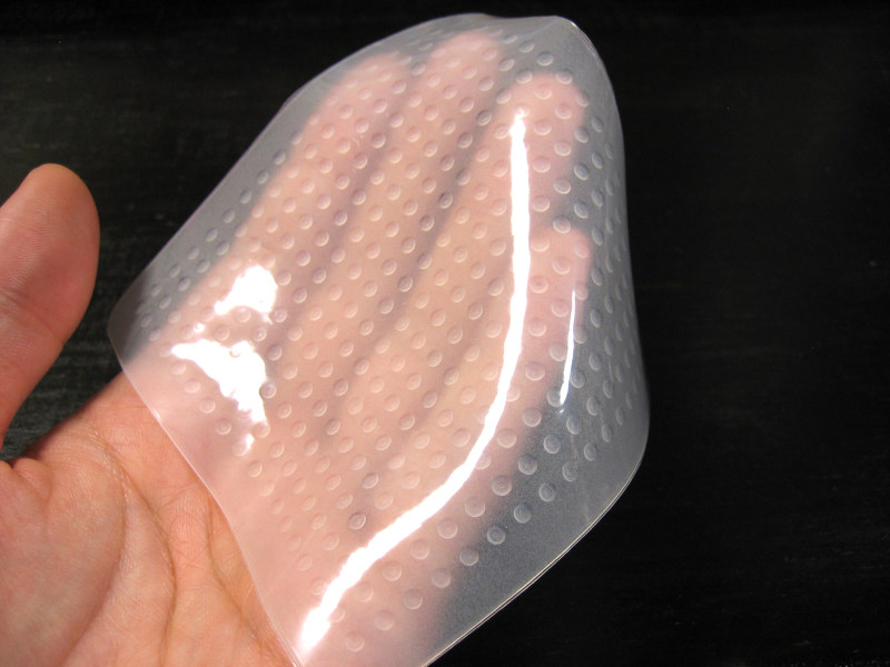 裏面は光沢加工で、シリコーン樹脂特有のベタベタした粘着性があります。